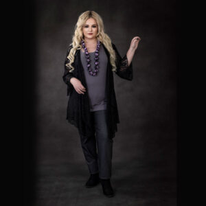 The T-Extender is almost a little petticoat for those tops thats just too short. Made from an extremely thin stretch mesh, to ensure no extra bulk and finished off with a wide black lace trimming. It is a very handy basic to make all your other tops match your module.